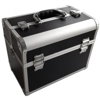 Hliníkový kufřík pro kadeřnice * luxusní provedení a precizní zpracování * 2 kovové zámky * popruh přes rameno * variabilní přihrádky * rozměry: výška 28cm, šířka 34cm, hloubka 22cm *