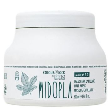 BES PROFESSIONAL - Colour Lock Maschera Midopla pH 3,0 500ml * Maska Maschera Midopla obsahuje vyváženou kombinaci bílkovin, která regeneruje strukturu vlasu * Přípravek je především určen na rekonstrukci vlasů * Ošetřující linie Locour Lock * Je to linie výrobků, která vám zaručuje po nabarvení barvami BES-HIFI nebo BES Profesional stabilitu barvy ve vlasech, a to při dodržení správného postupu barvení i následného ošetření vlasů přípravky Colour Lock * Colour Lock patří mezi ošetřující linie s kyselým pH s nabídkou specifických výrobků určených k použití před a po barvení vlasů *