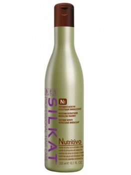 BES PROFESSIONAL - Silkat Nutritivo Shampoo N1 - šampon na poškozené vlasy 300ml * Aktivní vyživující šampon na suché, odbarvené a roztřepené vlasy * Tento šampon dokáže umýt a současně vyživit suché a roztřepené vlasy * Jeho mimořádně jemný základ ve spojení s kationovým polymerem vlasům dodá harmonickou výživu a hedvábný lesk * Spojení oleje ze lněných semínek, vysokého obsahu vitamínů E a F, pěti oligoprvků -mědi, hořčíku, železa, zinku a křemíku, antistatické silikonové emulze a olivového másla nabízí specificky zaměřenou a vyváženou výživu. Specifickou proto, že dokáže vyživovat různé stupně suchosti vlasů a vyváženou proto, že správnou výživu dodá do míst, ve kterých je vlas nejvíce narušený a roztřepený *