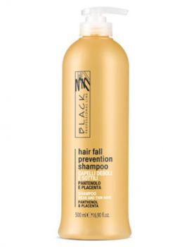 BLACK - HAIR FALL PREVENTION SHAMPOO 500ml * obsahuje extrakt placenty a panthenolu, který posiluje jemné a slabé vlasy * unikátní formule šamponu vyživuje kořínky a zamezuje vypadávání vlasů * Použití: jemně vmasírujte malý objem šamponu do vlhkých vlasů, nechte působit cca 2minuty a poté opláchněte *