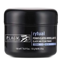 BLACK Rytual 150ml - modelovací elastická pomáda - Velmi silně tužíci. Profesionální stylingový přípravek na tvarování vlasů a vytváření tzv "crazy " účesů. Pro nejlepší stylingové výsledky naneste malé množství Rytual Pomate do dlaní, rozetřete a aplikujte do vlasů