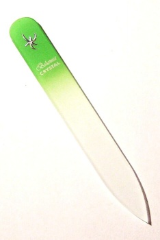 BOHEMIA CRYSTAL - Skleněný pilník na nehty délka 90mm, šířka 11,5mm, tloušťka 2mm * Různé vzory obrazců * Velmi kvalitní provedení * Ručně dokončované * PVC pouzdro * Brusná plocha - brusné oboustranné plochy jsou leptány zcela novou technologií, která zajišťuje jedinečnost mezi výrobci a maximální ostrost. Samotná brusná plocha je nezničitelná * Mechanická pevnost - při běžném používání nepraskne a je odolný vůči pádu na změkčené povrchy - lino, koberec. Po dopadu na tvrdé předměty jako kámen, dlaždici nebo beton dojde samozřejmě k jeho mechanickému poškození * Údržba - po použití pilník opláchněte proudem vody. Při větším znečištění můžete použít kartáček a saponát. Lze jej též vyvařit, sterilizovat nebo dezinfikovat * Kvalita, pevnost odolnost a funkčnost pilníku byla testována a schválena autorizovanou zkušebnou *