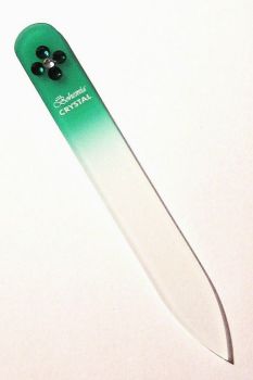 BOHEMIA CRYSTAL - Skleněný pilník na nehty délka 90mm, šířka 11,5mm, tloušťka 2mm * Různé vzory obrazců složené ze Swarovski komponentů * Velmi kvalitní provedení * Ručně dokončované * PVC pouzdro * Brusná plocha - brusné oboustranné plochy jsou leptány zcela novou technologií, která zajišťuje jedinečnost mezi výrobci a maximální ostrost. Samotná brusná plocha je nezničitelná * Mechanická pevnost - při běžném používání nepraskne a je odolný vůči pádu na změkčené povrchy - lino, koberec. Po dopadu na tvrdé předměty jako kámen, dlaždici nebo beton dojde samozřejmě k jeho mechanickému poškození * Údržba - po použití pilník opláchněte proudem vody. Při větším znečištění můžete použít kartáček a saponát. Lze jej též vyvařit, sterilizovat nebo dezinfikovat * Kvalita, pevnost odolnost a funkčnost pilníku byla testována a schválena autorizovanou zkušebnou *
