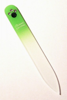 BOHEMIA CRYSTAL - Skleněný pilník na nehty délka 90mm, šířka 11,5mm, tloušťka 2mm * Různé vzory obrazců složené ze Swarovski komponentů * Velmi kvalitní provedení * Ručně dokončované * PVC pouzdro * Brusná plocha - brusné oboustranné plochy jsou leptány zcela novou technologií, která zajišťuje jedinečnost mezi výrobci a maximální ostrost. Samotná brusná plocha je nezničitelná * Mechanická pevnost - při běžném používání nepraskne a je odolný vůči pádu na změkčené povrchy - lino, koberec. Po dopadu na tvrdé předměty jako kámen, dlaždici nebo beton dojde samozřejmě k jeho mechanickému poškození * Údržba - po použití pilník opláchněte proudem vody. Při větším znečištění můžete použít kartáček a saponát. Lze jej též vyvařit, sterilizovat nebo dezinfikovat * Kvalita, pevnost odolnost a funkčnost pilníku byla testována a schválena autorizovanou zkušebnou *
