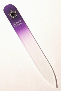 BOHEMIA CRYSTAL - Skleněný pilník na nehty délka 90mm, šířka 11,5mm, tloušťka 2mm * Různé vzory obrazců složené ze Swarovski komponentů * Velmi kvalitní provedení * Ručně dokončované * PVC pouzdro * Brusná plocha - brusné oboustranné plochy jsou leptány zcela novou technologií, která zajišťuje jedinečnost mezi výrobci a maximální ostrost. Samotná brusná plocha je nezničitelná * Mechanická pevnost - při běžném používání nepraskne a je odolný vůči pádu na změkčené povrchy - lino, koberec. Po dopadu na tvrdé předměty jako kámen, dlaždici nebo beton dojde samozřejmě k jeho mechanickému poškození * Údržba - po použití pilník opláchněte proudem vody. Při větším znečištění můžete použít kartáček a saponát. Lze jej též vyvařit, sterilizovat nebo dezinfikovat * Kvalita, pevnost odolnost a funkčnost pilníku byla testována a schválena autorizovanou zkušebnou *