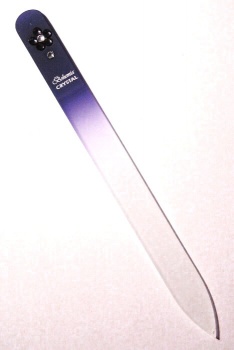 BOHEMIA CRYSTAL - Skleněný pilník na nehty délka 140mm, šířka 11,5mm, tloušťka 2mm * Různé vzory obrazců * Velmi kvalitní provedení * Ručně dokončované * PVC pouzdro * Brusná plocha - brusné oboustranné plochy jsou leptány zcela novou technologií, která zajišťuje jedinečnost mezi výrobci a maximální ostrost. Samotná brusná plocha je nezničitelná * Mechanická pevnost - při běžném používání nepraskne a je odolný vůči pádu na změkčené povrchy - lino, koberec. Po dopadu na tvrdé předměty jako kámen, dlaždici nebo beton dojde samozřejmě k jeho mechanickému poškození * Údržba - po použití pilník opláchněte proudem vody. Při větším znečištění můžete použít kartáček a saponát. Lze jej též vyvařit, sterilizovat nebo dezinfikovat * Kvalita, pevnost odolnost a funkčnost pilníku byla testována a schválena autorizovanou zkušebnou *