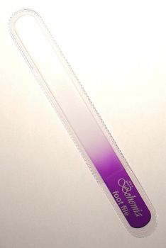 BOHEMIA CRYSTAL - Skleněný pilník na nehty délka 200mm, šířka 20mm, tloušťka 3mm * Včetně PVC obalu * Velmi kvalitní provedení * Ručně dokončované * Brusná plocha - brusné oboustranné plochy jsou leptány zcela novou technologií, která zajišťuje jedinečnost mezi výrobci a maximální ostrost. Samotná brusná plocha je nezničitelná * Mechanická pevnost - při běžném používání nepraskne a je odolný vůči pádu na změkčené povrchy - lino, koberec. Po dopadu na tvrdé předměty jako kámen, dlaždici nebo beton dojde samozřejmě k jeho mechanickému poškození * Údržba - po použití pilník opláchněte proudem vody. Při větším znečištění můžete použít kartáček a saponát. Lze jej též vyvařit, sterilizovat nebo dezinfikovat * Kvalita, pevnost odolnost a funkčnost pilníku byla testována a schválena autorizovanou zkušebnou *