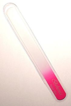 BOHEMIA CRYSTAL - Skleněný pilník na nehty délka 200mm, šířka 20mm, tloušťka 3mm * Včetně PVC obalu * Velmi kvalitní provedení * Ručně dokončované * Brusná plocha - brusné oboustranné plochy jsou leptány zcela novou technologií, která zajišťuje jedinečnost mezi výrobci a maximální ostrost. Samotná brusná plocha je nezničitelná * Mechanická pevnost - při běžném používání nepraskne a je odolný vůči pádu na změkčené povrchy - lino, koberec. Po dopadu na tvrdé předměty jako kámen, dlaždici nebo beton dojde samozřejmě k jeho mechanickému poškození * Údržba - po použití pilník opláchněte proudem vody. Při větším znečištění můžete použít kartáček a saponát. Lze jej též vyvařit, sterilizovat nebo dezinfikovat * Kvalita, pevnost odolnost a funkčnost pilníku byla testována a schválena autorizovanou zkušebnou *