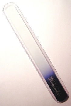 BOHEMIA CRYSTAL - Skleněný pilník na nehty délka 200mm, šířka 20mm, tloušťka 3mm * Včetně PVC obalu s potiskem Bohemia Czech Crystal Hand Made * Velmi kvalitní provedení * Ručně dokončované * Brusná plocha - brusné oboustranné plochy jsou leptány zcela novou technologií, která zajišťuje jedinečnost mezi výrobci a maximální ostrost. Samotná brusná plocha je nezničitelná * Mechanická pevnost - při běžném používání nepraskne a je odolný vůči pádu na změkčené povrchy - lino, koberec. Po dopadu na tvrdé předměty jako kámen, dlaždici nebo beton dojde samozřejmě k jeho mechanickému poškození * Údržba - po použití pilník opláchněte proudem vody. Při větším znečištění můžete použít kartáček a saponát. Lze jej též vyvařit, sterilizovat nebo dezinfikovat * Kvalita, pevnost odolnost a funkčnost pilníku byla testována a schválena autorizovanou zkušebnou *