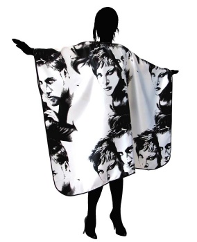 DUKO 9082 * Luxusní kadeřnický střihací plášť saténový - černobílý * Rozměr 128x164cm * Zapínání na suchý zip *