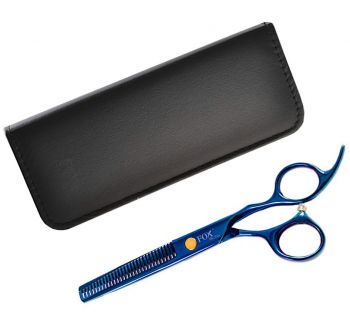 Profesionální kadeřnické efilační nůžky Fox Blue Rose o velikosti 6" jsou vyrobeny z kvalitní nerezové oceli (420) s povlakem z teflonu. Nůžky mají ostré a odolné ostří s 32 zuby, jsou tenké, lehké a skvěle padnou do ruky, čemuž přispívá také ergonomický tvar nůžek a pevná malíková opěrka. Díky nastavitelnému středovému šroubu lze nůžky snadno přizpůsobit dle vašich potřeb. Součástí balení je praktické pouzdro se zapínáním na zip a dvěma poutky uvnitř, hřeben, seřizovací klíč a čistící hadřík.