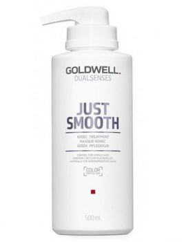 GOLDWELL DUALSENSES - Just Smooth 60sec Treatment 500ml * Výživná maska, pro okamžitou regeneraci a zkrocení nepoddajných vlasů, obohacená o microProtec complex a olej z ořechu Kukui * Jeho aktivní látky vyrovnávají poréznost vlasů a uhlazují je na povrchu * Díky tomu je zajištěna lepší ovladatelnost, odolnost proti krepatění a snadné rozčesávání * Okamžitá 100 % regenerace vlasů již v 60 sekundách. Hloubkově vyživuje a hydratuje * Použití: Naneste na mokré či ručníkem vysušené vlasy a nechte působit 60 sekund. Po té důkladně opláchněte *