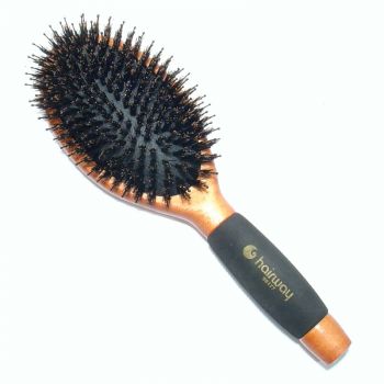 HAIRWAY 8177 - Profesionální oválný kartáč na prodloužené vlasy speciálně vytvořený pro rozčesávání a úpravu vlasů * mezi kančí štětiny jsou vsazeny speciální nylonové ostny zakončené kuličkou pro snažší rozčesávání prodloužených vlasů * hroty s kančími štětinami jsou vsazeny do gumového polštáře * dřevěná rukojeť * Rozměry: 75x235mm *
