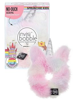 Dětská verze Invisibobble Sprunchie přichází s hravým a unikátním designem. Pod plyšovým povrchem s oušky a stříbrným jednorožčím rohem je schovaná spirálová gumička, která nezanechává ve vlasech stopy a vlasy pevně drží bez vzniku bolesti nebo nepříjemného tahání. Je tak vhodná pro každodenní a celodenní nošení.