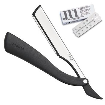 JAGUAR SOLINGEN - ORCA 62mm * Elegantně navržená břitva v černé matné barvě a z nerezové oceli * Nové a vylepšené ergonomické držení umožňuje uživatelům dosáhnout plynulé a přesné řezání * Jednoduchá a bezpečná výměna břitu díky odnímatelnému držáku břitu * Balení obsahuje 10 dvojitých břitů * Na dlouhé břity: 62,0 mm *