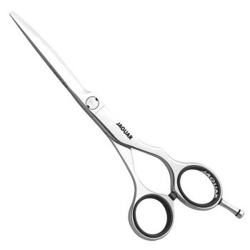 JAGUAR SOLINGEN - BLACK LINE - EVOLUTION 5,75" - 15cm * Elegantní a charismatické, splňující nejnáročnější požadavky * Oblé ostří pro ideální úhel střihu v libovolné poloze * Rotující kroužek palce zabraňuje otlakům * Offsetový design pro lehký a přesný střih * Ergonomicky tvarované očko pro palec umožňuje přirozené uchycení nůžek - svaly na rukou, krku a ramenech tak zůstávají uvolněné * Exkluzivní mikrokarbidová ocel s technologií FRIODUR® pro extrémně vysokou životnost téměř žiletkového ostří * Nové Jaguarem vyvinuté SMART SPIN středové uložení šroubku zaručuje přesné navádění břitů * Plně integrované břity nůžek se speciální technologií DC broušení ideální pro precizní klouzavý střih * Neobvyklé prvky designu a funkčnosti * Perfektně vybalancované * Vysoce lesklý vzhled *