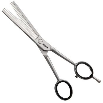 JAGUAR SOLINGEN - WHITE LINE - SATIN 30 EFIL 6" - 15,5cm * oboustranné efilační nůžky se 30 zuby * V-zoubkování zajišťuje hladký, měkký pocit při zavírání nůžek * Symetrické uspořádání oček pro prsty * Dlouhá ostrost břitů nůžek díky speciální oceli * VARIO - středové uložení šroubku pro jednoduché seřízení přítlaku nůžek * Klasické břity s plochým úhlem ostří * Ideální pro precizní střih * Satinová úprava *