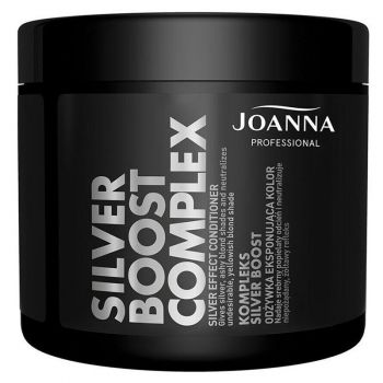 JOANNA Professional - Silver Boost Complex Conditioner 500g * Vlasový kondicionér oživující blond barvu vlasů s mikroproteiny * Dokonale neutralizuje nežádoucí žlutý odstín blond vlasů po zesvětlování nebo barvení * Dodává vlasům šedivý odstín, který se zvýrazňuje stupňovitě po několikanásobném použití * Receptura kondicionéru, obohacená o ochranné mikroproteiny, zanechává vlasy jemné a příjemné na dotyk * Kondicioner má aromatickou vůni černého rybízu * Návod k použití: Naneste do vlhkých, šamponem umytých vlasů a jemně vmasírujte od kořínků po konečky vlasů. Ponechte 5-6 minut působit a po té dobře opláchněte. V případě nutnosti postup opakujte. Po použití si důkldně omyjte ruce, šampon může zanechávat modré zabarvení. Pro dosažení nejlepších výsledků použivejte šampon z řady COLOR REVITALIZING LINE. Poznámka: Na silně zesvětlených vlasech zkraťte dobu působení kondicionéru na 2 minuty. Upozornění: Vyhněte se kontaktu s očima. V případě kontaktu očí, okamžitě vymyjte vodou. Balení: HDPE doza; Obsah: 500g *