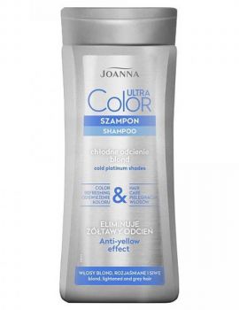 JOANNA Ultra Color Systém - Cold Platinum Shades Shampoo 200ml - šampon pro platinovou blond vlasů * Šampon na vlasy Ultra Color systém je určen k odstranění nažloutlých odstínů melírovaných vlasů, dodává jim platinovo-šedou barvu * Intenzita barvy se zvýší po opakovaném použití * Tento šampon je možno použít i na šedivé vlasy * EFEKTY - žlutý odstín vlasů se změní na stříbrno-šedou barvu - dodá jim lesk a platinový odstín * Vlasy se dobře rozčesávají a jsou jemné na dotyk * Použití: Naneste na vlhké vlasy, důkladně vmasírujte. Nechte působit po dobu 1–5 minut. Během pigmentačního procesu vlasy pečlivě sledujte. Po dosažení požadovaného odstínu opláchněte *