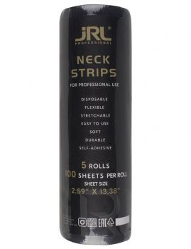 Černý barber papír na krk JRL je vyroben z pružného a vysoce kvalitního materiálu, který je odolný, měkký a voděodolný. V balení se nachází 5 rolí, každá role má 100 límců.