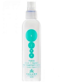 KALLOS COSMETICS KJMN - 14in1 Keratin Hair Treatment Spray 200ml - regenerační sprej na poškozené vlasy * Keratinová péče o vlasy 14 v 1 vlasy ošetřuje, hydratuje, vyživuje, regeneruje, nezatěžuje a dodává jim objem * Jeho jedinečné složení je obohaceno o keratin, arganový olej, avokádový olej, kokosový olej, slunečnicový olej, lněný olej, macadamiový olej, olivový olej, vitamin B3, B5, B6, C, E a panthenol * Vlasy zůstanou krásně lesklé, zdravé, hedvábné a zářivě * Použití: Nastříkejte na vlhké, ručníkem vysušené vlasy. Neoplachujte! *