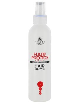 KALLOS COSMETICS KJMN - Hair Pro-Tox Hair Bomb 200ml - bezoplachový kondicioner na suché a poškozené vlasy * Unikátní speciální výživný a regenerační balzám na vlasy * Jedinečné složení - Keratin, kolagen, kyselina hyaluronová, kokosový olej, arganový olej, olivový olej, avokádový olej, slunečnicový olej, macadamiový olej a B3, B5, B6, C a vitamin E, panthenol - intenzivní péče poskytovaná poškozeným a roztřepevým vlasovým kapilárám * Chrání, pečuje, ozdravuje, zlepšuje rozčesání vlasů * Po použití budou vlasy na dotek hebké, měkké a brilantně lesklé * Použití: Naneste na umyté, ručníkem vysušené vlasy. Neoplachujte *