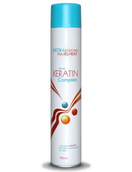 TOTAL KERATIN COMPLEX - Hair Spray Extra Strong 750ml * Lak na vlasy s keratinem * Poskytuje ultra silné zpevnění * Díky výjimečnému složení s obsahem keratinu dodává vlasům sílu, vyživuje a regeneruje jejich strukturu * Použitím laku jsou vlasy pevně zafixovány a díky keratinu i ošetřeny * Vlasy se lehce rozčesávají a nelepí * Jemný rozprašovač a příjemná parfemace zpříjemňují jeho každodenní používání nejen v kadeřnictví *