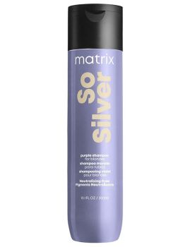 MATRIX - Total Results Color Obsessed - So Silver Shampoo 300ml - šampon pro blond a melírované vlasy * Neutralizuje nežádoucí žluté tóny a napomáhá uchovat dokonale čistou blond s platinovým odleskem * Šampon je vhodný na přírodní blond vlasy, barvené blond vlasy, zesvětlené a melírované vlasy a bílé (šedivé) vlasy * Je vhodný i pro použití na chemicky ošetřené vlasy * Může být aplikován na vlasy bezprostředně před i po barvení * Aplikací šamponu se vlas otevře, aby mohl být jemně vyčištěn * Šampon Silver je možné kombinovat s libovolnou péčí z řady Matrix * Po použití jsou vlasy vyživené, hebké na dotek a lesklé s blond nádechem * Působení: 2-3 minuty dle potřeby, pro maximální efekt nechte působit až 10 minut *