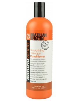 NATURAL WORLD - BRAZILIAN KERATIN Smoothing Therapy Conditioner 500ml - balzám s brazilským keratinem * Kondicionér se zvláčňující kúrou Brazilského keratinu je krémového složení obohacený o inteligentní bio-mimetický brazilský keratin * Biomimetický brazilský keratin nejen že nahrazuje, ale také imituje vlasové proteiny v přírodním složení k poskytnutí péče o opravy poškozených oblastí * Napomáhá opravovat a kontrolovat kadeře při plné obnově jejich lesku a jemnosti * Okamžitě se vstřebává bez zanechání jakékoliv mastnoty * NEOBSAHUJE PARABEN * Návod k použití: Aplikujte rovnoměrně na vlhké vlasy po použití šamponu od kořínků až po konečky vlasů. Nechejte působit 2 - 3 minuty. Poté důkladně vymyjte vlažnou vodou * Pro ještě lepší výsledky používejte společné s dalšími kosmetickými výrobky obsahující Brazilský keratin * Made In England *