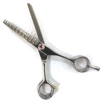 PRO FEEL JAPAN - SEASON-2 YA 5520 * Speciální dvoudílné efilační kadeřnické nůžky 5,5' (14,5cm) japonské výroby * 20 a 10 zubů * Hladce broušené ostří * Změkčený chod nůžek díky speciální flexibilní sestavě v kloubu * Nastavitelný chod nůžek šroubem ve kterém je zapuštěn ozdobný růžový krystal * Plochý šroub, zapuštěný do těla nůžek * Výborné střížné vlastnosti pro speciální styling a střih vlasů * Pouzdro na nůžky zdarma*