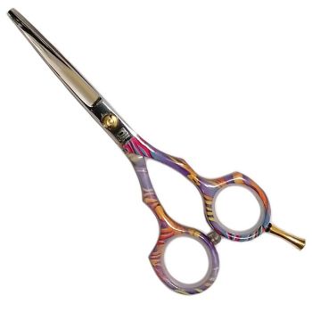 PRO FEEL JAPAN - CS03-55 Magic Night * Profesionální kadeřnické nůžky 5,5' japonské výroby 14cm * Hladce broušené ostří * Přímá, tvarovaná držátka pro položení ukazováku * Pevný kovový doraz mezi oky * Odnímatelný opěrník malíčku * Změkčený chod nůžek díky speciální flexibilní sestavě v kloubu * Nastavitelný chod nůžek otočnou maticí * Plochý šroub, zapuštěný do těla nůžek * Výborné střížné vlastnosti a pohodlné do ruky * Skvělý poměr kvality a ceny *