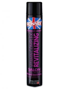 RONNEY London - Revitalizing Vitamin Complex Hair Spray 750ml - extra silný lak na vlasy * Obsahuje komplex vitamínů pro výživu, regeneraci a lesk vlasů * Navrženo pro konečné zpevnění účesu * Rychleschnoucí lak nezatěžuje vlasy, poskytuje dlouhotrvající účinek, chrání před škodlivými účinky vlhkosti a nepřiznivými vlivy počasí * Použití: Aplikujte na suché vlasy ze vzdálenosti 30 cm *