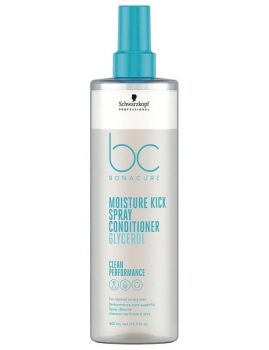 SCHWARZKOPF BONACURE BC - Moisture Kick Spray Conditioner Glycerol 400ml * Lehký a intenzivní 2 fázový kondicionér pro každodenní použití, pro normální až suché nebo vlnité vlasy * Hloubkově hydratuje, vyživuje a regeneruje poškozená vlasová vlákna, uzavírá je a uhlazuje jejich povrch, zanechává je svěží, hebká a jemná * Vlasy se snadno rozčesávají a upravují * Derivát kyseliny hyaluronové hydratuje vlasy a pokožku a v kombinaci s Cell Perfector Technology zjemňuje povrch vlasu, dodává hebkost, poddajnost a lesk každému jednotlivému pramenu * Použití: Aplikujte na ručníkem vysušené vlasy. Neoplachujte *