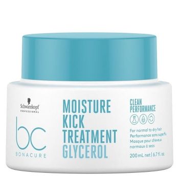 SCHWARZKOPF BONACURE - Moisture Kick Treatment 200ml * Hluboce hydratační kúra pro normální až suché, lámavé nebo kudrnaté vlasy * Tako kúra intenzivně vyživuje normální až suché nebo kudrnaté vlasy * Složení s novou technologií Cell Protector a derivát kyseliny hyaluronové pracuje uvnitř vlasových buněk a poskytuje hlubokou hydrataci * Pro vláčné a vyživené vlasy plné lesku * Použití: Naneste do délek a konečků umytých vlasů. Nechte 5-10 minut působit. Poté pečlivě opláchněte. Používejte 1-2 týdně *