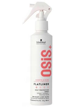 SCHWARZKOPF OSIS+ FLATLINER - SÉRUM PRO ŽEHLENÍ NEBO KULMOVÁNÍ VLASŮ 200ml * pro použití s narovnávací žehličkou nebo s kulmou na vlasy * díky tužicím účinkům vhodný pro formování vlasů pomocí vlasové žehličky, kulmy nebo krepovačky * ochraňuje vlasy a pomáhá je zafixovat ve tvaru jakém požadujete * obsahuje ingredience odolné vůči teplotě do 200°C * speciální ochrana vlhkosti vlasů umožňuje dosáhnout o 30% déle trvající výsledek * dokonalá ochrana vlasů proti nepříznivým účinkům tepla při žehlení vlasů * silná fixace č.3 * Aplikace: Na suché vlasy: nastříkejte do vybraných partií před použít narovnávací žehličky nebo kulmy. Na vlhké vlasy: rovnoměrně nastříkejte po celé hlavě před fénováním. Vlasy narovnejte žehličkou nebo natočte kulmou *