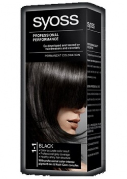 SYOSS PROFESSIONAL PERFORMANCE - Permanent Coloration * Permanentní barva na vlasy s intenzivními barvicími pigmenty pro dlouhotrvající intenzivní barevný výsledek * Profesionální krytí šedin * Zdravě lesklé vlasy * Černý odstín 1-1 vám dodá přirozenou černou intenzivní barvu plnou lesku * Vysoce účinná receptura vlasových barev SYOSS uzavírá intenzivní barvicí pigmenty hluboko uvnitř vlasu pro dosažení dlouhotrvající barvy plné lesku s extra péčí díky Nutri-Care komplexu * Příjemná nedráždivá vůně při nanášení * Profesionální kvalita-profesionální výsledky *
