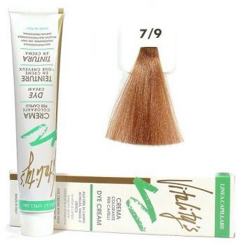 Krémové barvy Vitalitys s lučními bylinami jsou výsledkem výzkumů, které byly směřovány ke konečnému odstranění agresivních a škodlivých účinků barev na vlasy. V této barvě bylo dosaženo zjemňujícího účinku tím, že se k základním složkám přidala směs rostliných výtažků slézu, řebříčku a kopřivy. Výtažek ze slézu má změkčující a protizánětlivý účinek. Výtažek z řebříčku má tonifikující a ochranné účinky a jeho aktivní složky zvyšují odolnost pokožky proti alergickým reakcím. Výtažek z kopřivy působí aktivně proti svědění vlasové pokožky, tonifikuje a regeneruje. Úúčinky rostlinných výtažků neovlivňují barvící směs či zesvětlující účinky, ale naopak zvýrazňují barvu, lesk a především zvyšují ochranu vlasů a pokožky. Nízký obsah amoniaku. Vynikající krycí schopnost. Před aplikací použijte na ochranu kontur ochranný Gel Barriera (viz. barvení vlasů - pomůcky)