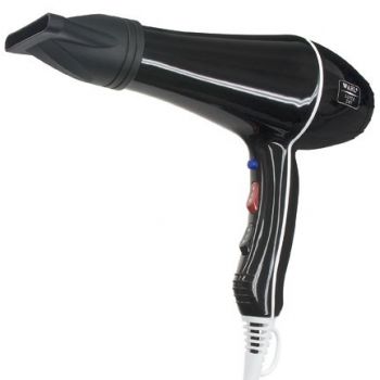 WAHL PROFESSIONAL - SUPER DRY 2000 - profesionální fén na vlasy 2000W * kadeřnický výkonný vysoušeč vlasů WAHL Super Dry s AC motorem o výkonu až 2000 W s bezpečnostní termopojistkou * ionizační efekt s turmalínovou technologií - záporné ionty působí antistaticky a jsou šetrné k vlasům, uzavírají povrch vlasů, vyhlazují je a propůjčují jim hedvábný vzhled * 2 rychlosti, 3 teplotní stupně + možnost samostatného foukání studeného vzduch + tlačítko rychlého ochlazování horkého vzduchu * 2 x profesionální hubice - úzká a široká * odnímatelný filtr pro snadné čištění * profesionální síťový kabel délky 3 m *