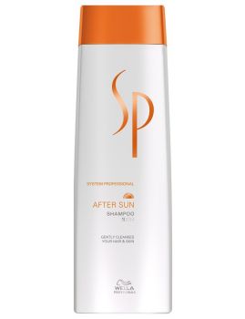 Slunce, vítr, chlórovaná voda, mořská sůl, to vše jsou nepřátelé našich vlasů. Vlasy zejména v letních měsících dostávají dost zabrat, proto potřebná výživa a ochrana před slunečními paprsky je nezbytná. Ochranný šampon Wella Sp After Sun na vlasy a tělo (2v1) po slunění šetrně čistí a odstraňuje zbytky opalovacích přípravků, soli a chlorované vody. Zároveň zlepšuje rozčesatelnost vlasů.