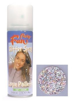 Lak na vlasy s flitrami. Nanášejte asi z 20cm vzdálenosti. Barva jde z vlasů odstranit běžným šamponem.